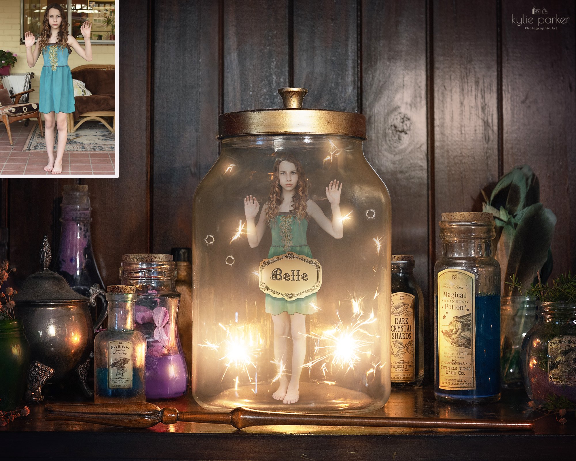 Set upon a shelf among jars of magic potions, the subject has been carefully bottled and placed among other spells. The glass suggests control, preservation, restraint.